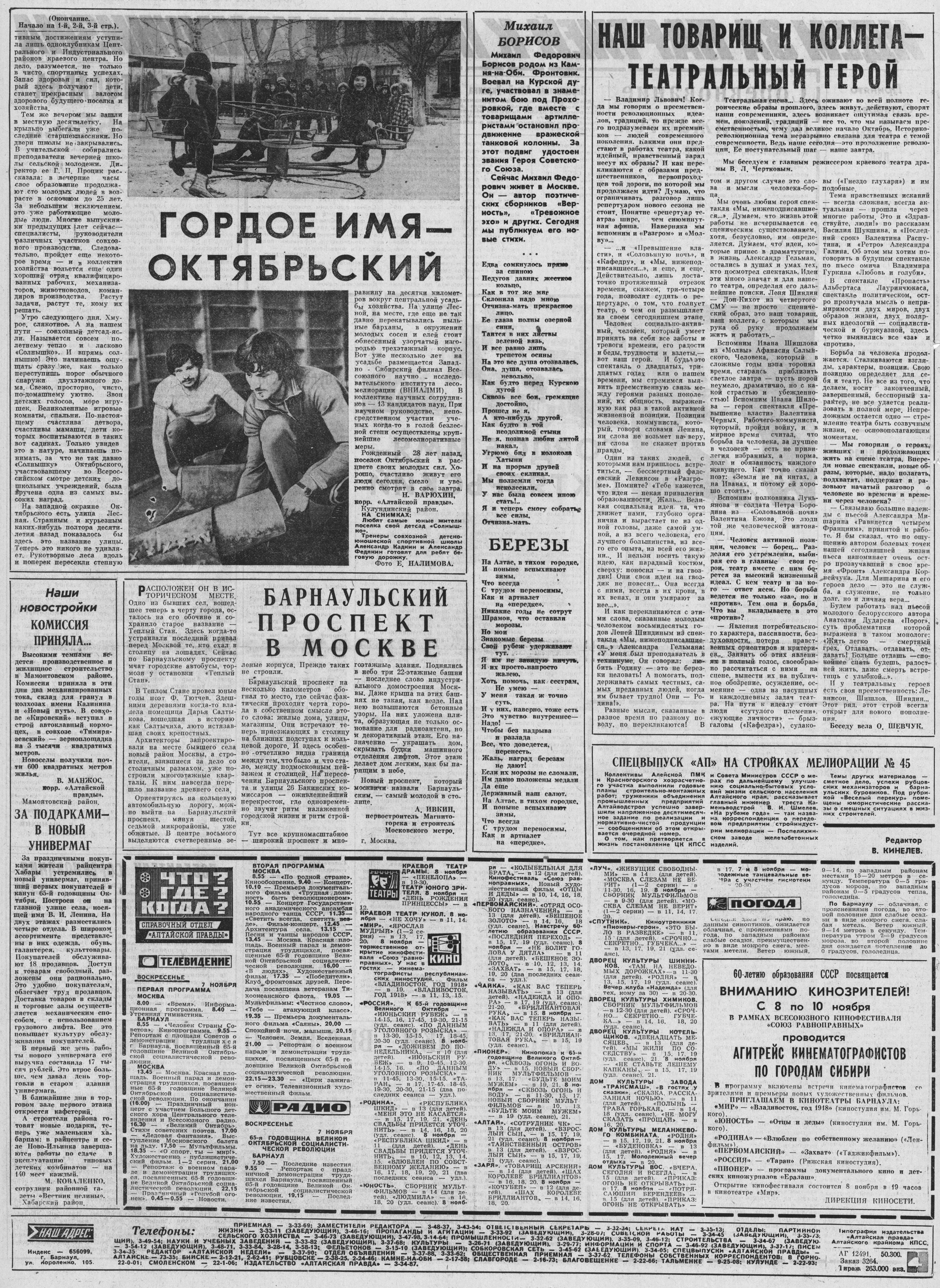 - Борисов, М. "Едва сомкнулось прямо за спиною..."; Березы : стихи / М. Борисов // Алтайская правда. - 1982. - № 258, 7 нояб. - С. 4.