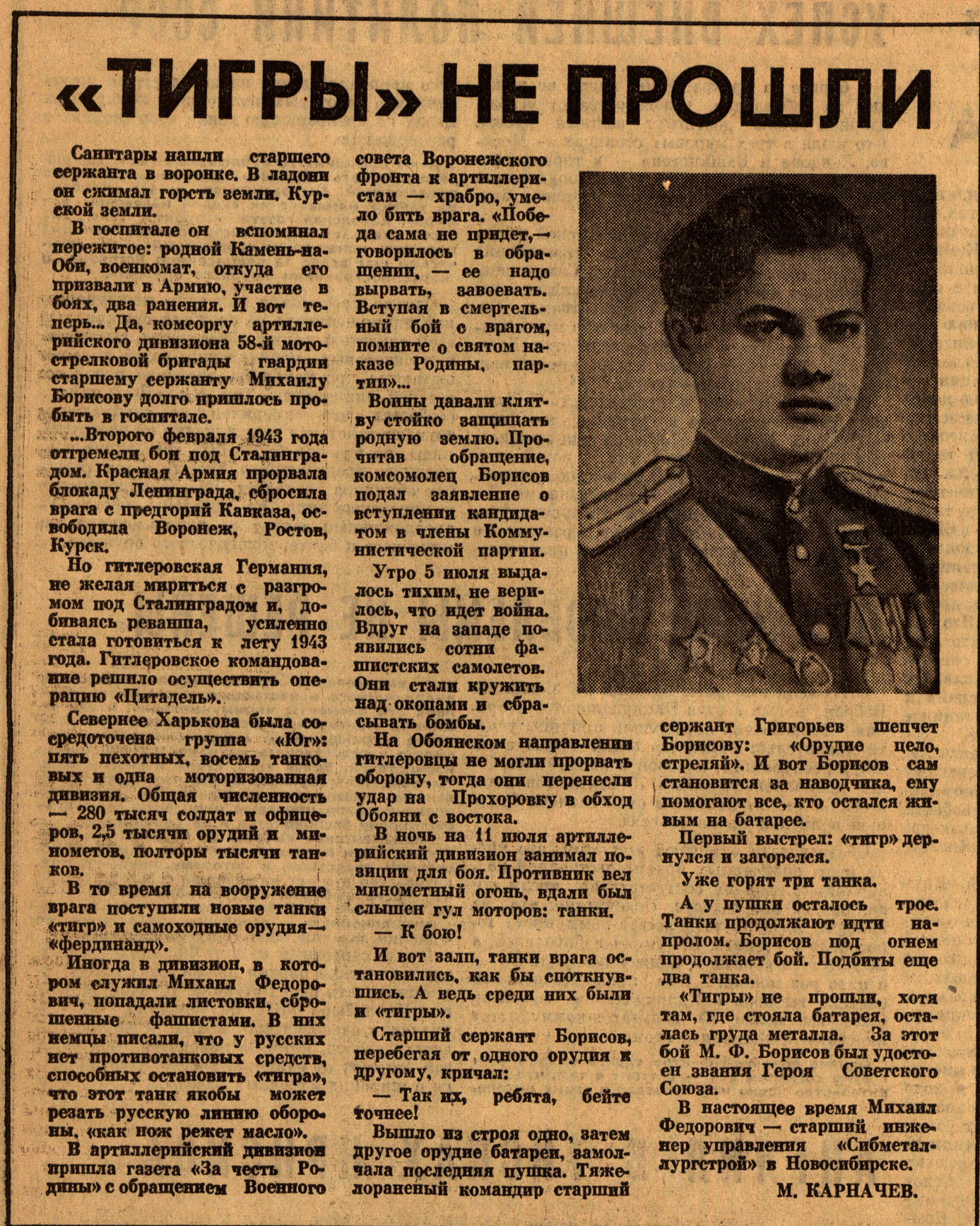 Полный текст (jpeg, 7,90 Мб) - Карначев, М. «Тигры» не прошли / М. Карначев // Алтайская правда. – 1968. – № 157, 7 июля. – С. 4 : портр.