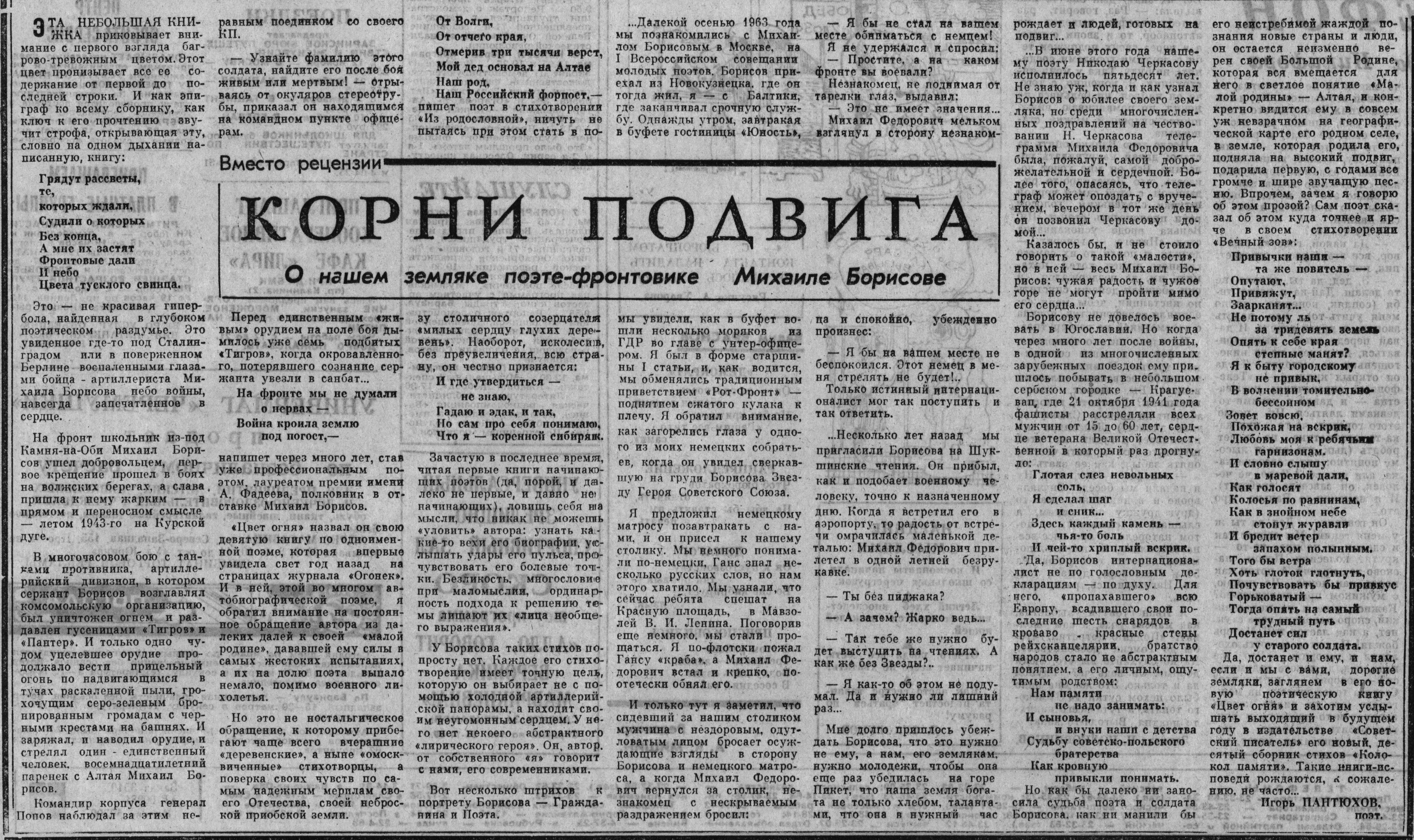 Полный текст (jpeg, 8,64 Мб) - Пантюхов, И. Корни подвига / И. Пантюхов // Алтайская правда. – 1988. – № 256, 7 нояб. – С. 3.