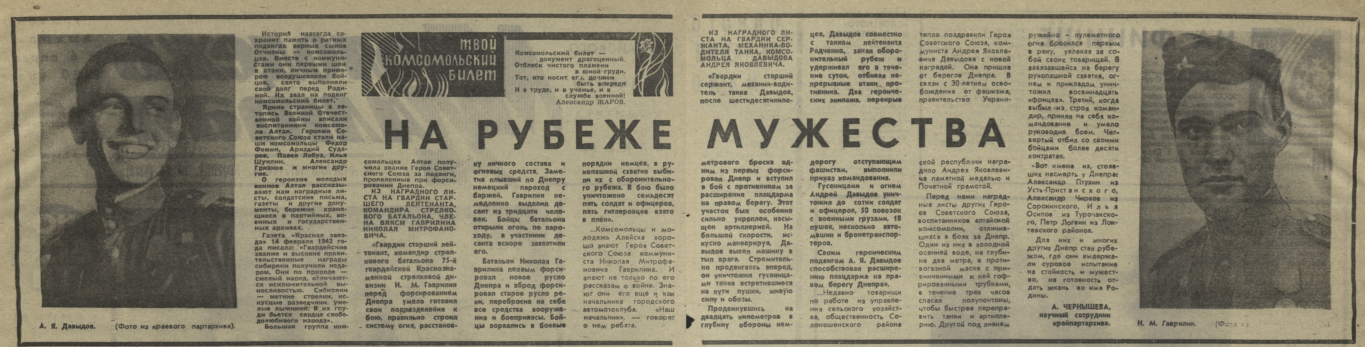 Полный текст (pdf, 788 Кб) - Чернышев, А. На рубеже мужества / А. Чернышев // Молодежь Алтая. – 1975. – № 34, 18 февр.: портр. – С. 2-3