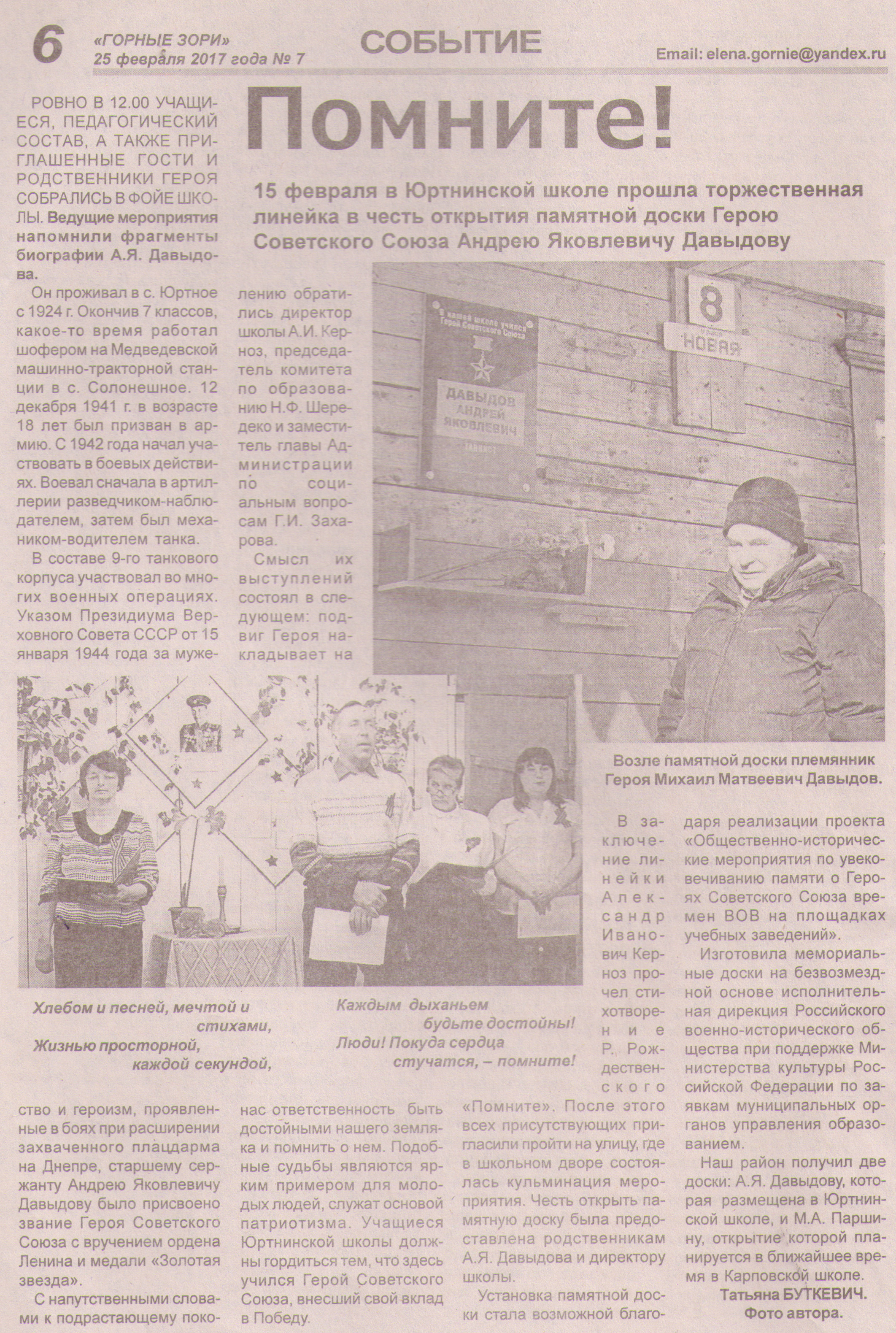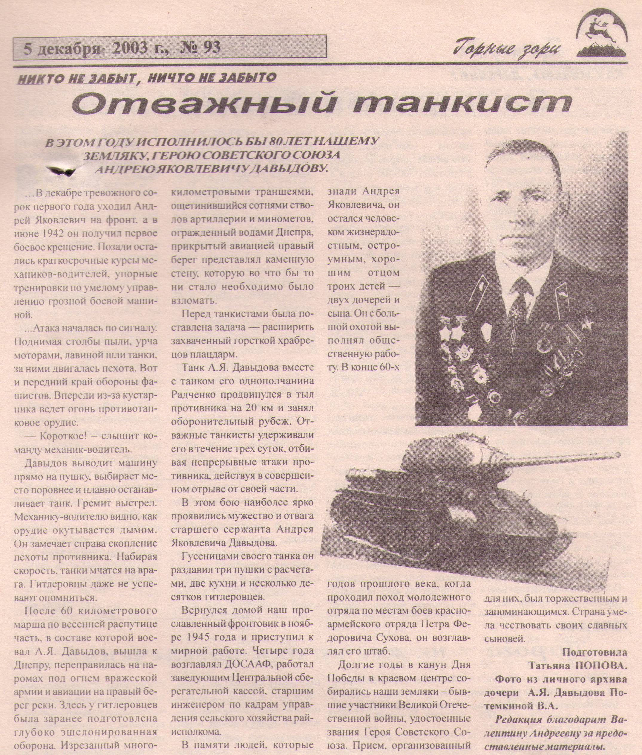 - Сухова, Л. Имя его помним, подвиг его не забудем / Л. Сухова // Заря Востока. - 2000. - № 3, 14 января. - С. 2.