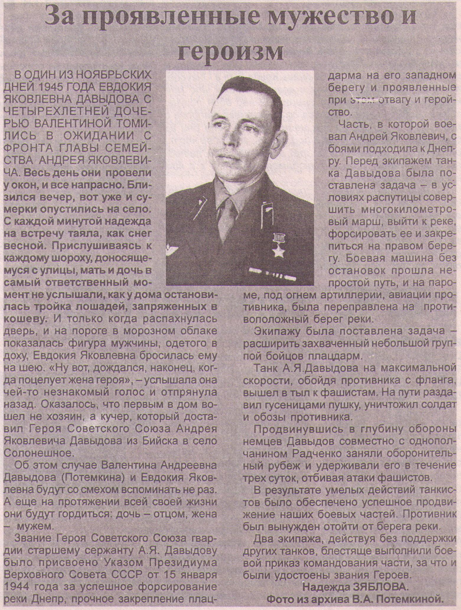 | 9. | Трифонов М. Он сделал много... : [О Герое Сов. Союза Г.И.Новикове, участнике Великой Отеч. войны из Барнаула] / Трифонов М. // Алтайская правда. - 1992. - № 85, 9 мая. - С. 4. Полный текст (jpeg, 788 Кб) |