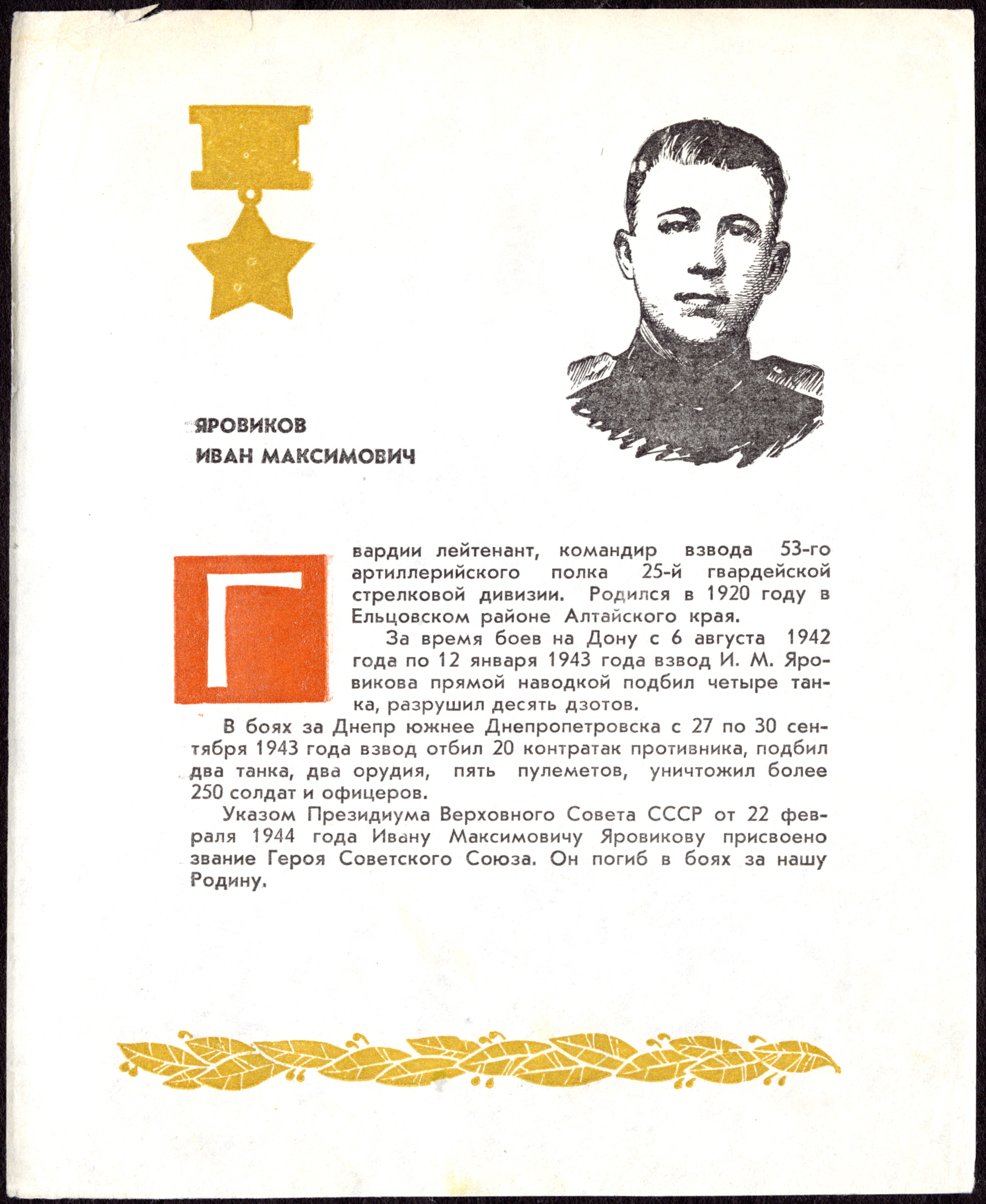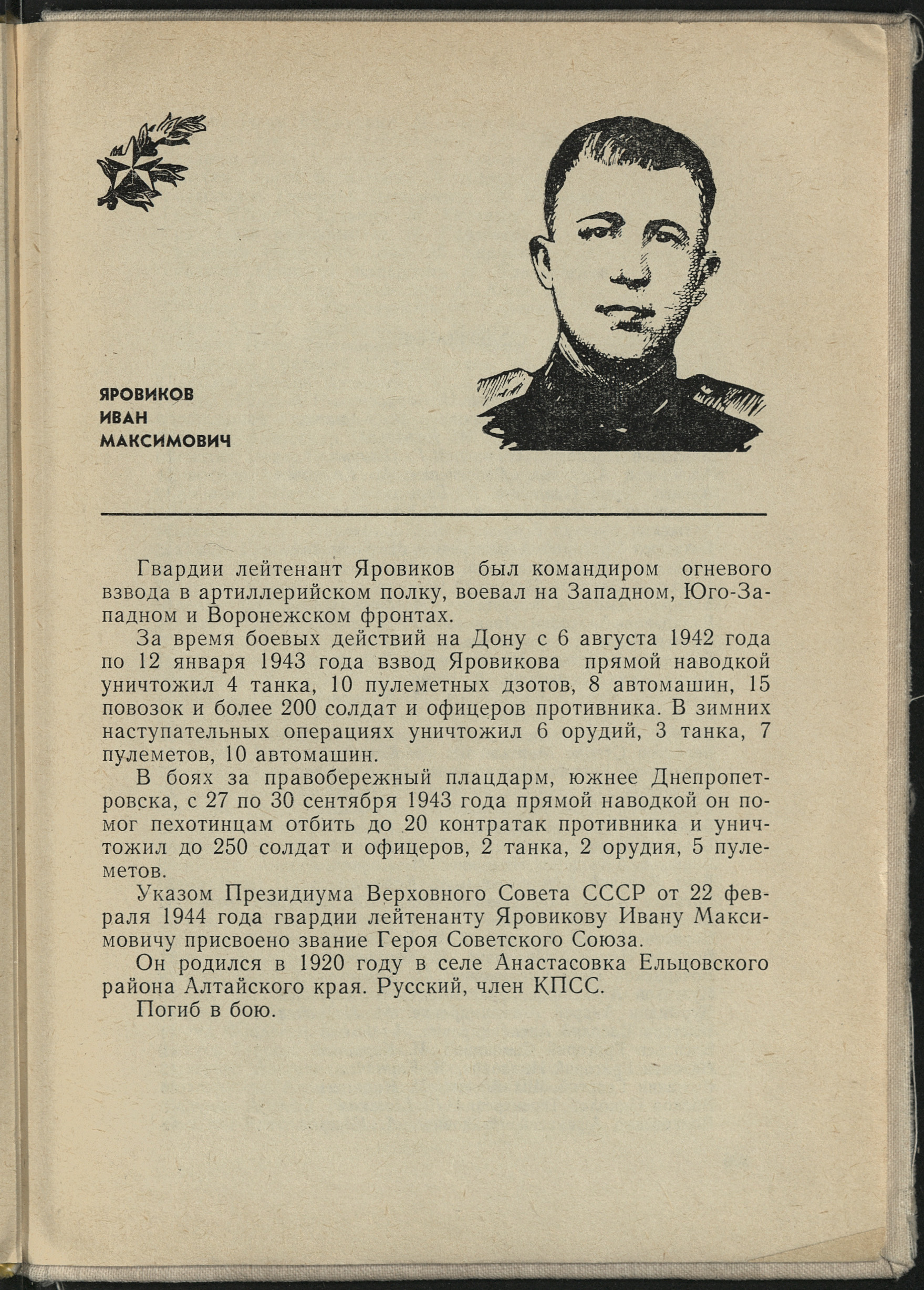 Полный текст (pdf, 848 Кб) - Яровиков Иван Максимович // Золотые звезды Алтая : наши земляки Герои Советского Союза / [авт.-сост. М. Т. Карначев]. - Барнаул : Алт. кн. изд-во. - 1969. - Вып. 1. - 1969.