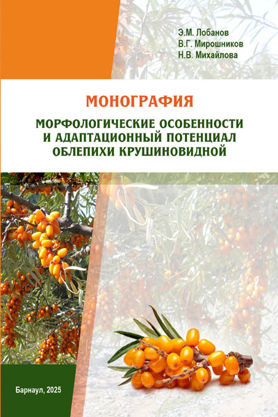 Лобанов, Э. М. Морфологические особенности и адаптационный потенциал облепиха крушиновидной : монография / Э. М. Лобанов, В. Г. Мирошников, Н. В. Михайлова. - Барнаул : Пять плюс, 2025. - 154 с. - Систем. требования: Adobe Acrobat Reader ; Windows. - Загл. с титул. экрана. - Электрон. версия печ. публикации. - Библиогр.: с. 144-153.
