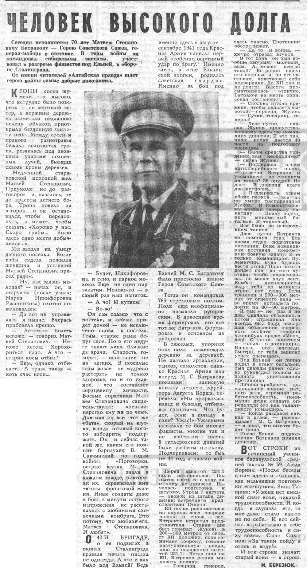 | 5. | Большаков В. Генерал Батраков // Алтайская правда. - 1980. - № 266, 18 нояб. - С. 4. Полный текст (jpg, 1,08 Мб) |