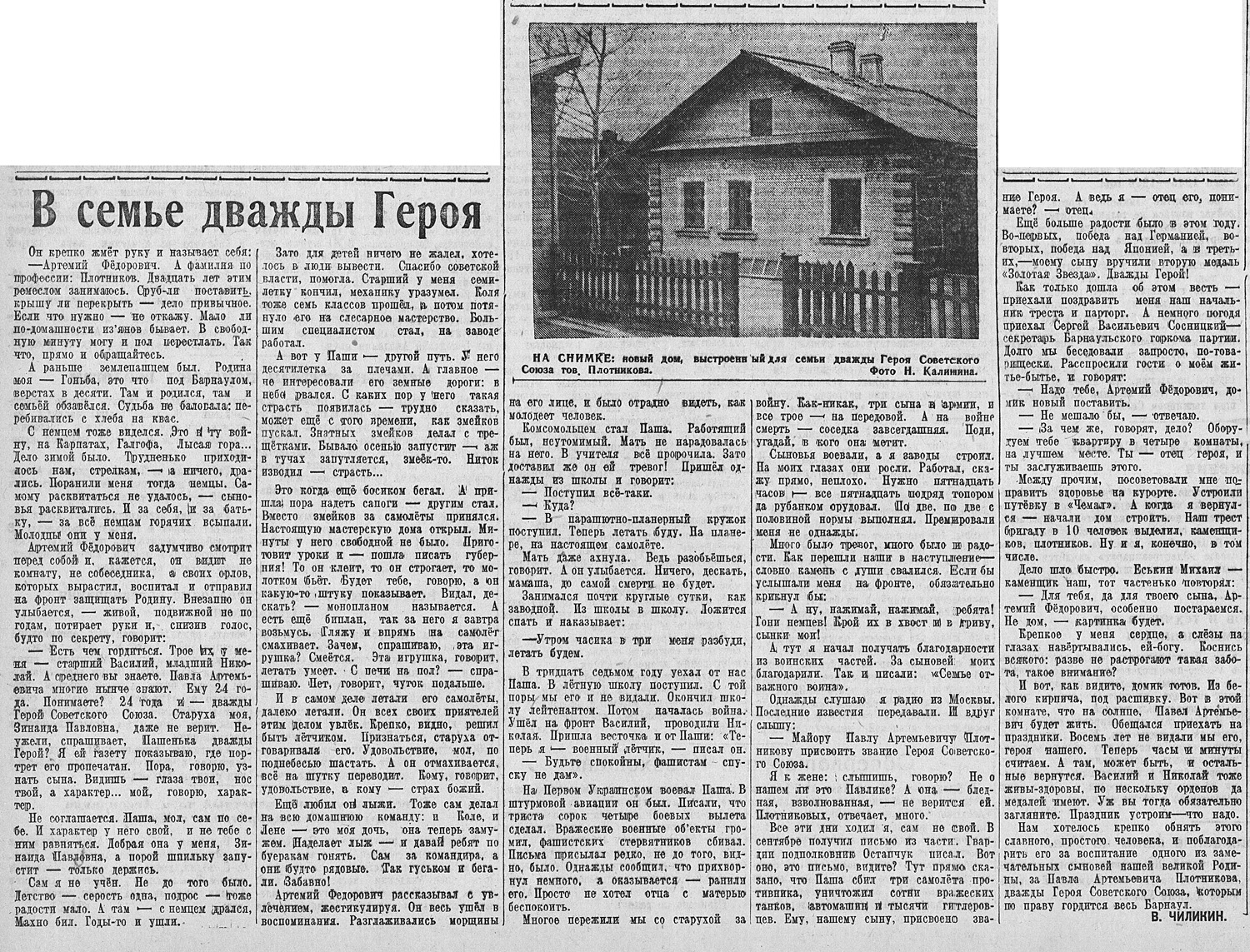 | 14. | Чиликин В. В семье дважды Героя // Алтайская правда. - 1945. - № 219, 4 нояб. - С. 2. Полный текст (jpeg, 949 Кб) |